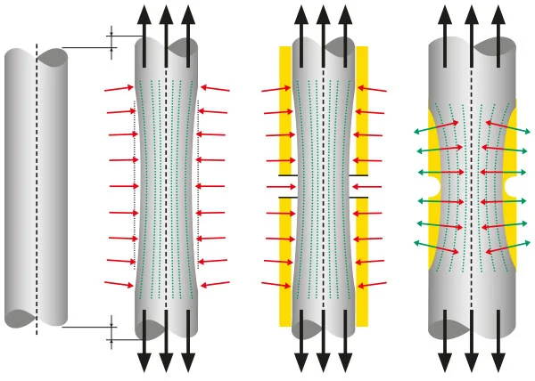 每个螺纹接头都必须遵循一个简单的工程设计规则:any fastener failure must occur in the shank of the male fastener – bolt or stud. It implies that the shear strength of both internal and external threads overcomes the tensile strength of the bolt. Therefore the choice of the fasteners and the design of the assembly must avoid any possibility of thread stripping while making sure the weakest element in the joint is the bolt or the stud.