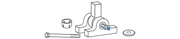 Install the Expander System loosely assembled. Position it in the bores and tighten the fastener. Hold the washer with a plier to prevent the axle from turning. Torque as specified.